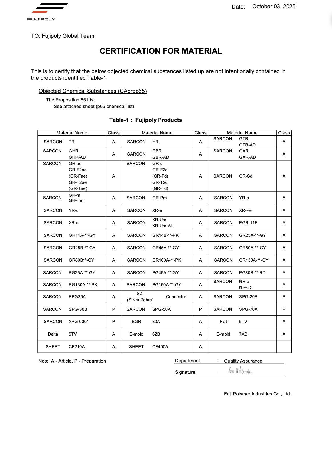If approval has been completed, an official order would be sent across to Fujipoly Europe B.V. that the Customer Service Department would prioritise to make sure that the order would be completed on time.